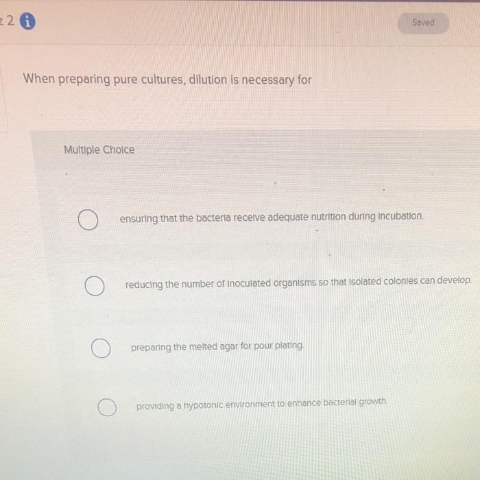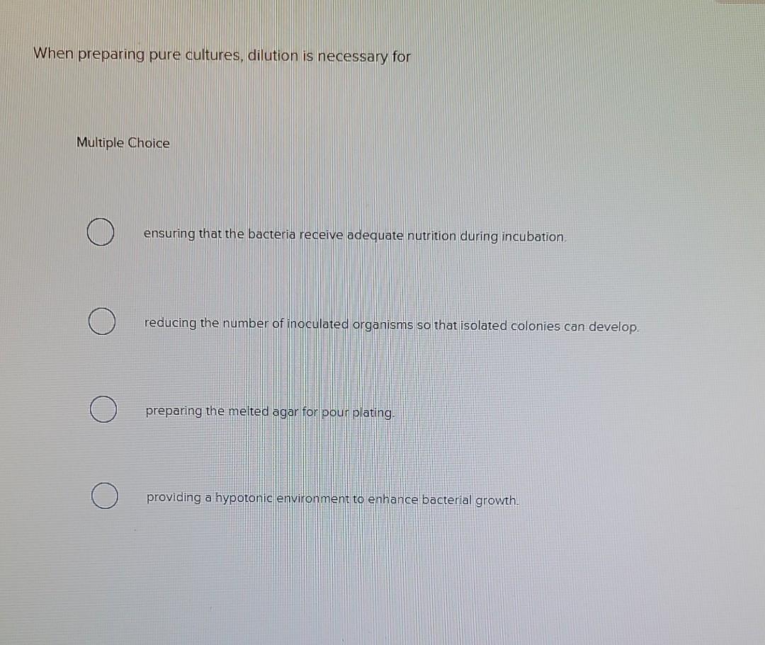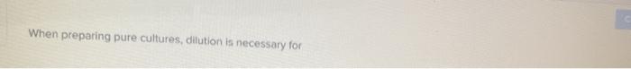 Solved When Preparing Pure Cultures Dilution Is Necessary Chegg Com