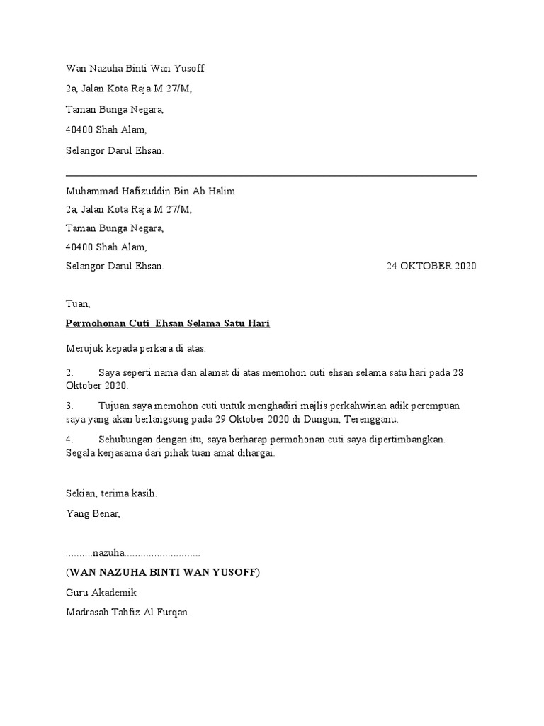 15 Contoh Surat Izin Tidak Masuk Kuliah Untuk Mahasiswa Yang Baik. Contoh surat rasmi permohonan cuti kerja have an image associated with the other. Contoh Surat Rasmi Memohon Cuti.